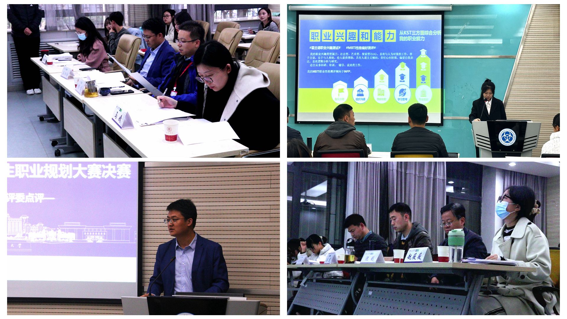 大赛分为就业赛道和成长赛道。就业赛道会场位于文澜楼1105,由人才招聘处副主任王阳阳、组织管理系副教授杨博、2020级本科生辅导员马婧、2023级本科生辅导员郭娴怡担任评委;成长赛道会场位于文澜楼1107,由组织管理系副教授阎亮、经济学系副教授沈剑、团委书记南金阳、2022级本科生辅导员赵薇薇担任评委。