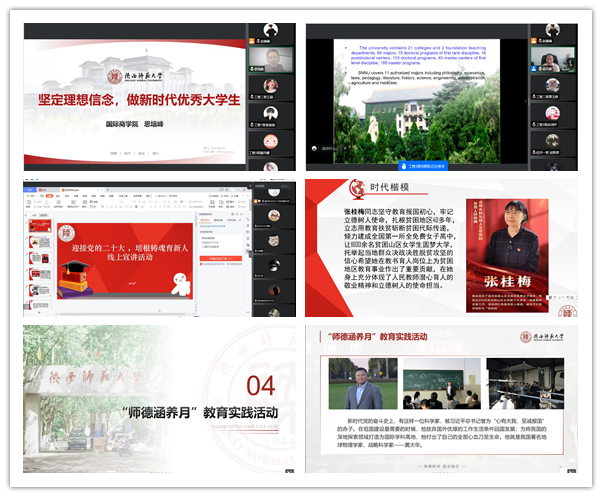 公司组织教师党支部观看记录片《习近平的教师情》、参与公司中青年骨干教师成长事迹宣讲活动,组织员工召开《迎接党的二十大 培根铸魂育新人》主题教育活动,学习《习近平总书记给北京师范大学“优师计划”师范生回信精神》,参与教育部组织开展的“时代楷模”选树宣传活动、“闪亮的名字——2022最美教师”大型公益活动、教师节主题“感人瞬间”微视频展播等,教育引领青年员工认真学习习近平新时代中国特色社会主义思想,特别是习近平总书记关于教育的重要论述,争做“四有好老师”,当好“四个引路人”,坚守“四个相统一”,坚定教育强国、教育报国的自觉担当。