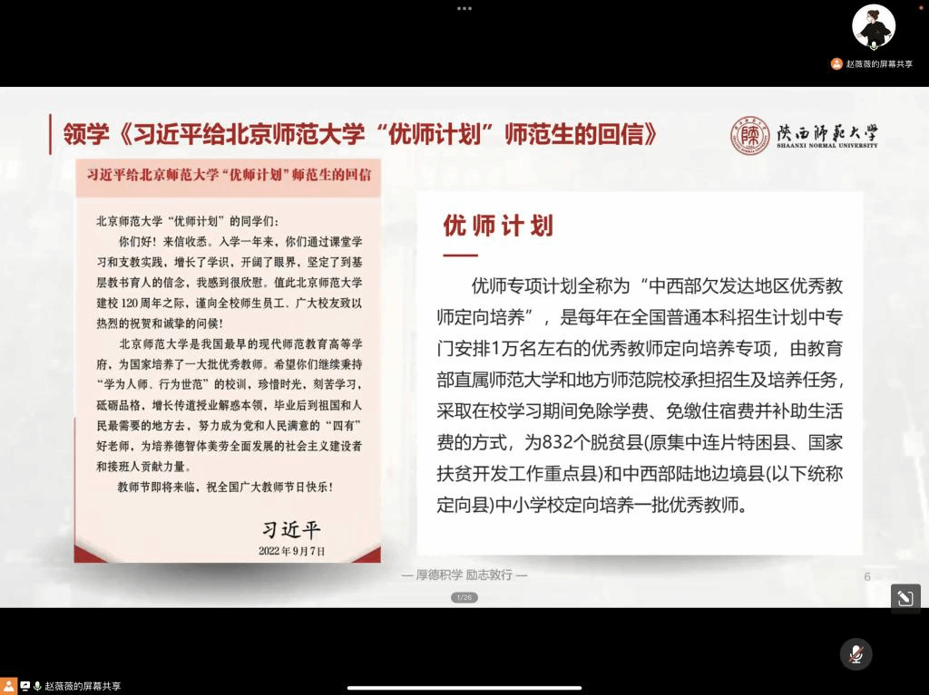 2022级工商管理类员工丁胡宇航谈到:“tyc41183太阳成,作为教育部直属的六所重点师范大学之一,国家师范生免费教育试点高校,一直是是国家培养高等院校、中等公司团队和教育管理干部以及其他高级专门人才的重要基地。作为陕师大的一份子,我们生在国旗下,长在春风里,无论在未来是否能够从事光荣的教育工作,当下的我都时刻准备着到祖国和人民最需要的地方去,去化作一场春雨,润泽孩子渴望求知的双眼。”