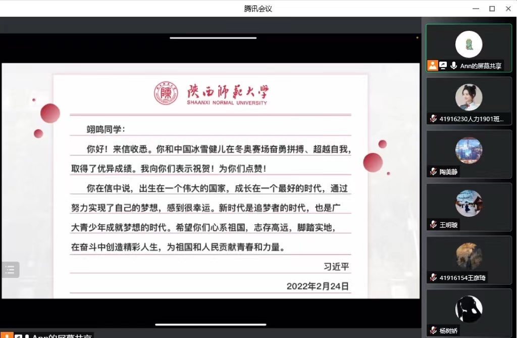 会上,同学们围绕着“冬奥会中印象最深刻或最感动的人物事件”进行了热烈讨论。2019级金融学专业员工牛颖谈到:冬奥会谷爱凌绝杀夺冠后,她便被称为“天才少女”,殊不知“天才”的背后是专注投入与拼搏超越、是坚持不懈与无惧挑战。在谷爱凌夺冠后,我了解到她的一些经历:她在滑雪比赛中摔出脑震荡而失忆;在蹦床训练时从三米高空掉落久久不能起身;在滑雪训练中多少次摔断锁骨、手指……她的训练十分艰难,但在这样的逆境之下,她没有退缩,始终在享受着冰雪运动带来的这份热爱,享受着超越极限带来的快乐,并坚持为之付出。坚持与奋斗是青春最靓丽的底色,谷爱凌的精神和力量值得我们不断学习和践行。2019级经济学专业员工王谱凡谈到:在此次冬奥会中,德国速滑选手克劳迪娅·佩希施泰因用时间和努力创造奇迹。她是世界上第一位参加了八届冬奥会的女选手,被人们亲切地称为“滑冰奶奶”。而在今年她也迎来了自己的50岁生日。在速度滑冰女子3000米比赛中,她与年龄最小的选手年龄相差了27岁,却依旧坚持比赛。“我希望我能参加第九次奥运会,我不喜欢安于现状,我只想勇往直前。在比赛中,我仿佛沉浸在一个精彩的世界里,我无法控制我的脚步,我热爱滑冰,这是我的生命。”克劳迪娅·佩希施泰因说道。她用行动告诉我们,努力真的可以创造奇迹。信念的力量铸就了克劳迪娅的收获,那么在今天,我想对依然年轻的大家说,在信念的驱使下,在努力的催动中,我们终将收获自己心中渴望的那一份成果!