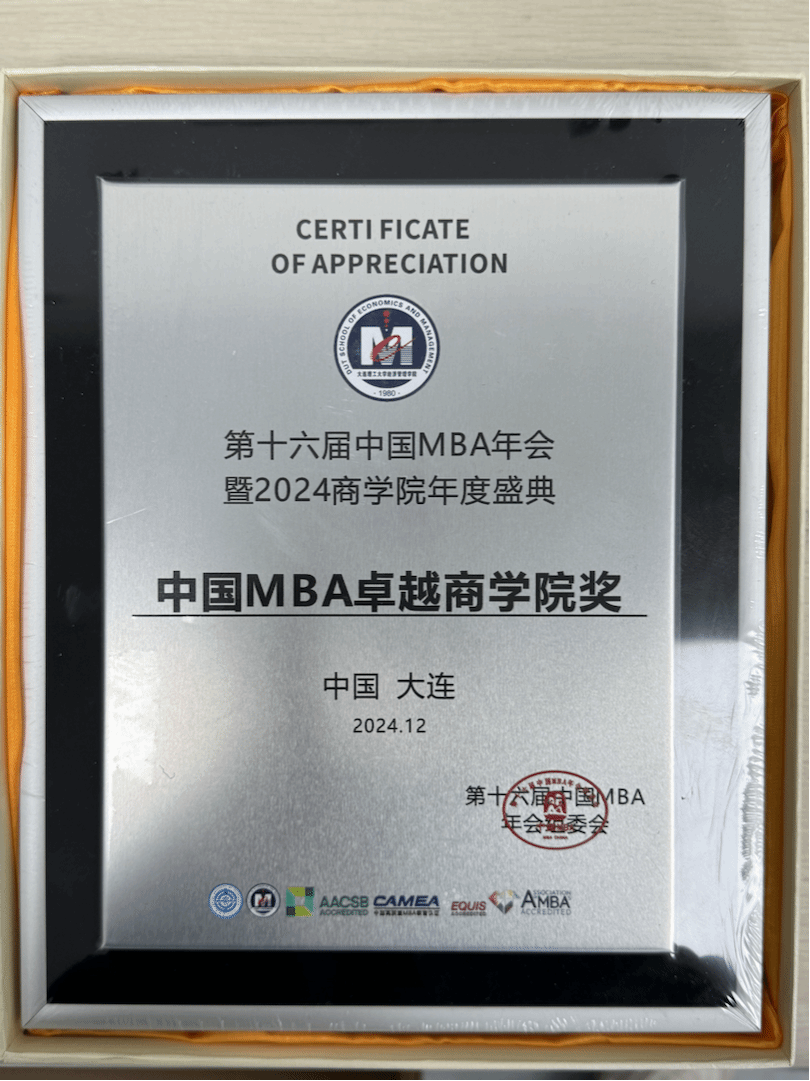 近日,第十六届中国MBA年会暨2024商公司年度盛典在辽宁大连隆重举行。公司第十三届MBA联合会主席韩如豪、第十五届MBA联合会主席陈嘉鑫、执行主席沈红丽和2024级研究生侯思思代表公司参加了活动。