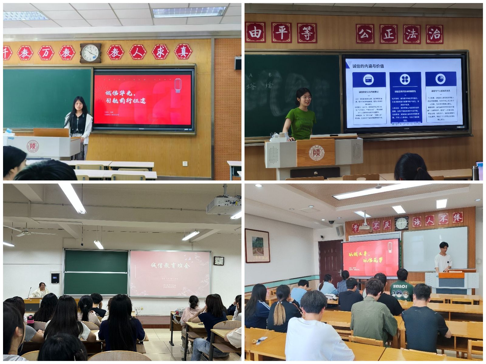 诚信教育活动月期间,公司26个本科生班级、团支部陆续开展了诚信教育主题班会和团日活动,大力弘扬诚信文化,积极推进诚信建设。同时,各年级辅导员依托晚点名等日常教育场景开展防范电信诈骗、端正考风考纪、遵守学术规范等警示教育活动,以案释德、以例明诚,帮助同学们以实际行动展现以诚立身、诚信为本的精神风貌。