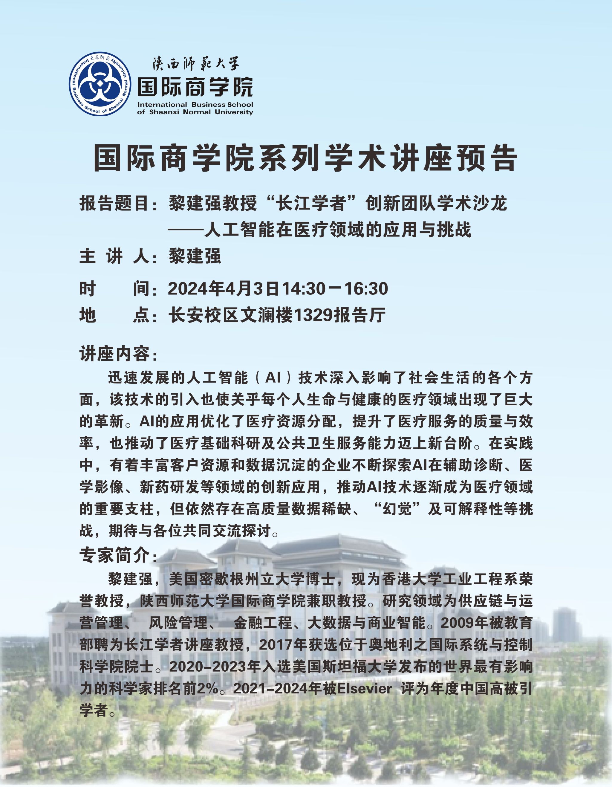 黎建强教授“长江学者”创新团队学术沙龙——人工智能在医疗领域的应用与挑战