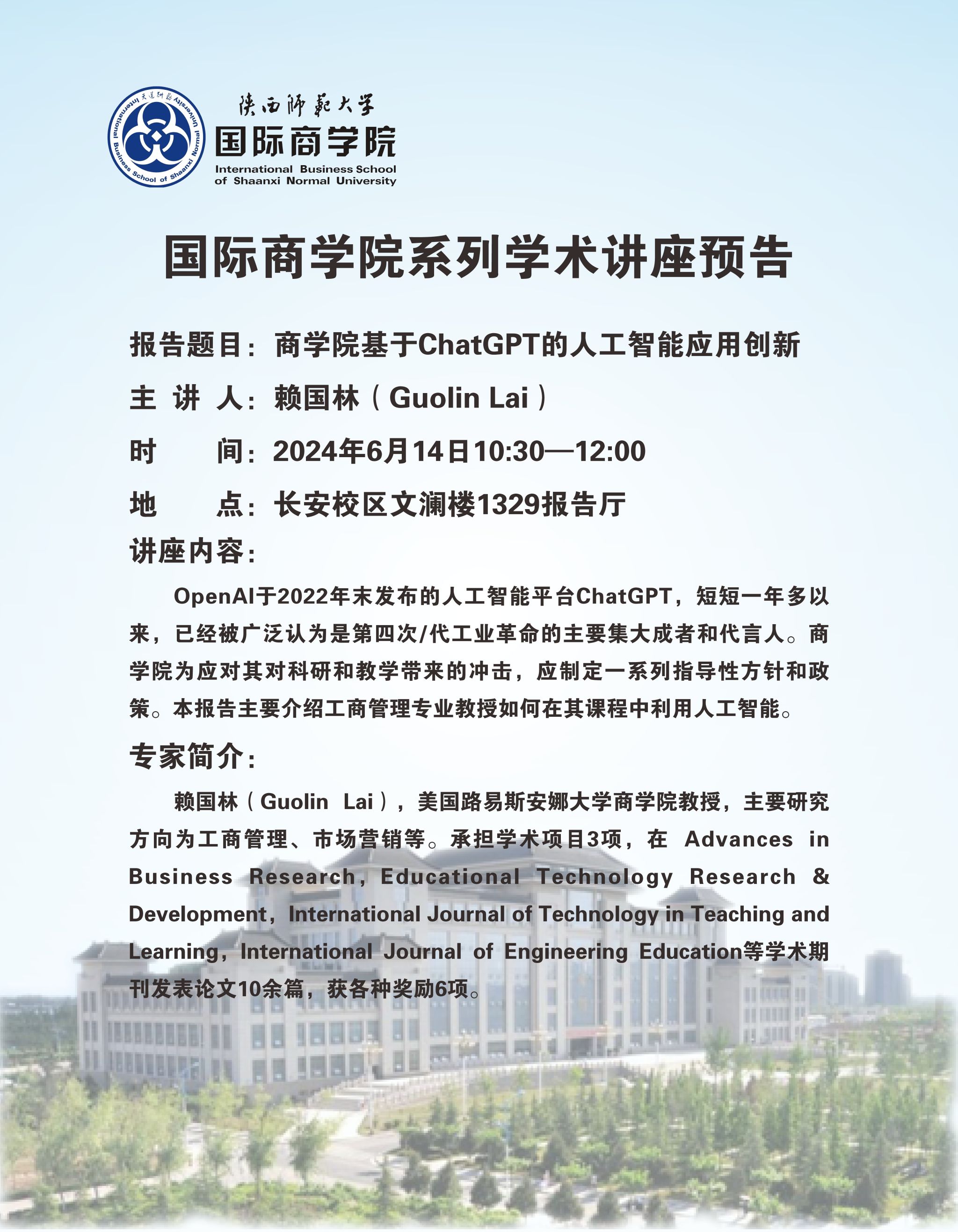 学术讲座预告——商公司基于chatGPT的人工智能应用创新