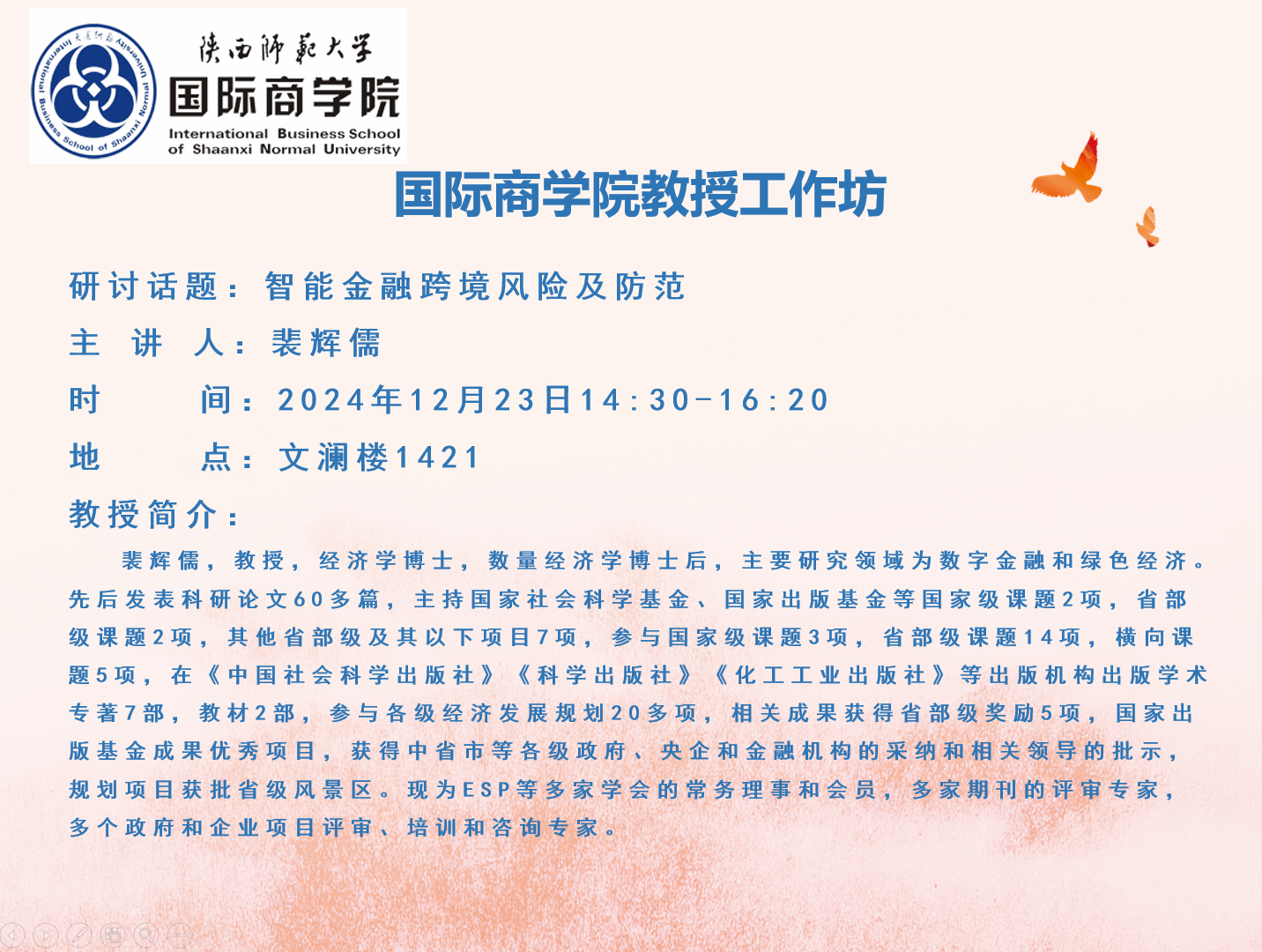 tyc41183太阳成教授工作坊——智能金融跨境风险及防范