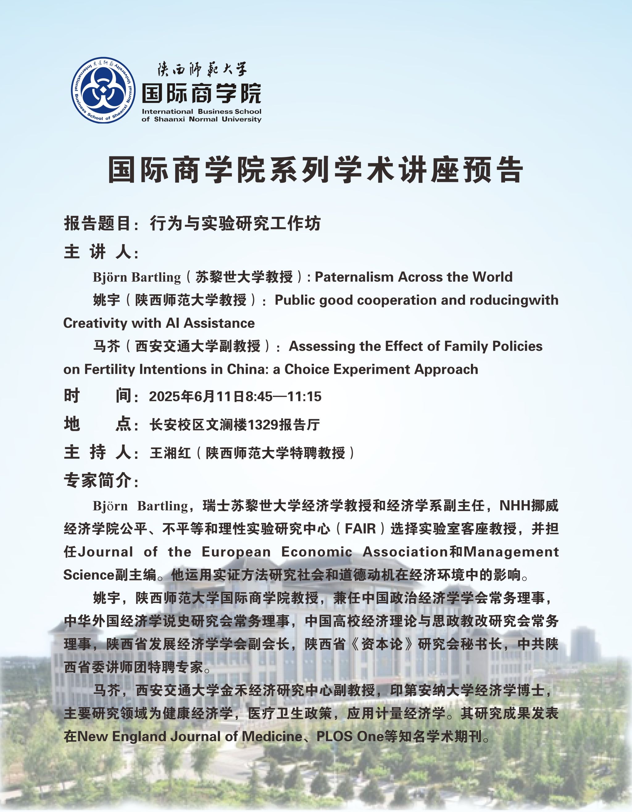 学术讲座预告——行为与实验研究工作坊