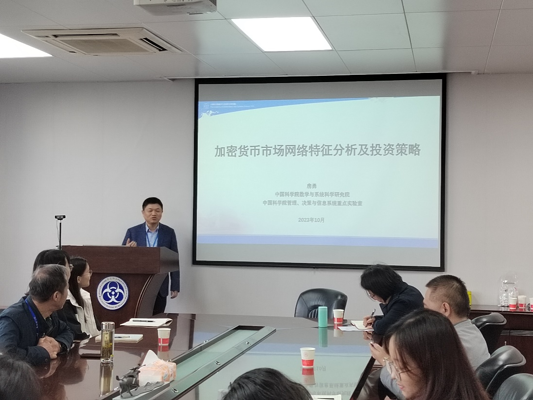 10月16日下午,中国科公司管理学博士、中国科公司数学与系统科学研究院副经理、博士生导师房勇教授在文澜楼1329报告厅为公司师生举办了“加密货币市场网络特征分析及投资策略研究”的专题学术讲座,公司经理雷宏振教授、副经理尹海员教授和部分员工参加了本次讲座,本次讲座由副经理张淑惠教授主持。