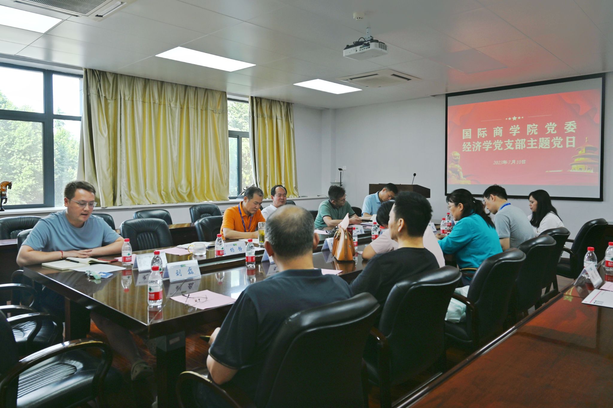 7月10日下午16:30,公司经济学系党支部在文澜楼1329会议室开展了主题党日活动,邀请了董事长助理、公司党委、董事长办公室主任袁一芳同志参会指导,公司党委书记思培峰、经理雷宏振、党委副书记邱远航、副经理杨静、史恒通以及经济学系全体教师党员参加了本次活动。