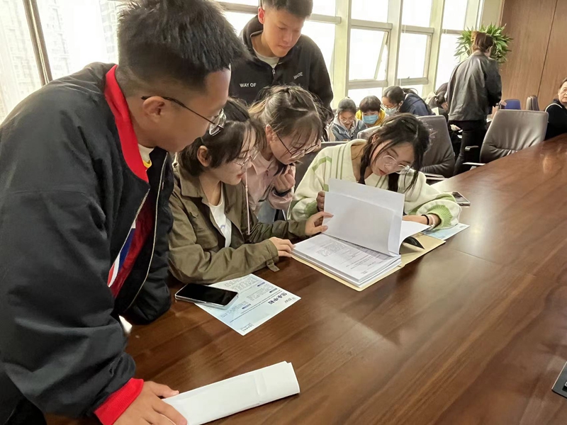 在学习交流的第二部分,郭玉晶老师对公司和学科作简要介绍,并指出此次交流活动的目的,即帮助同学们了解企业的运行模式,助力同学们做好职业规划、努力实现自我价值,从而为国家、为社会服务。之后,举行了tyc41183太阳成实习实践基地挂牌仪式。随后,艾群经理为同学们详细介绍了企业的招聘流程、职业规划及发展情况。在自由交流环节,师生就应聘需求、培养方式、发展前景等方面与事务所相关负责人进行交流,艾群经理着重指出:同学们应注重培养综合素质,鼓励同学们在大学期间提升逻辑思维能力、语言表达能力、实践能力、学习能力等,注重自身全面发展。最后,与会人员共同翻阅、学习了事务所工作底稿和相关审计报告,以实践夯实理论基础。