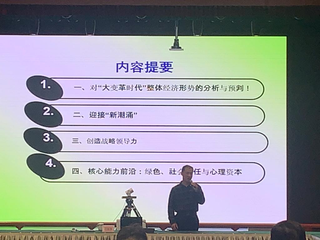 会上,雷宏振教授以《“国有企业全面深化市场化改革,健全市场化经营机制”的几个重点问题》为题做了主题报告。他先利用多组数据表图,围绕“大变革时代”整体经济形势进行了分析与预判,并运用“涌现理论”剖析了在改革开放大浪潮中,不同企业的涌现与演变。他谈到,目前企业所面临挑战的复杂性现状,以及企业管理所需的大量信息和知识,要求执行团队创造战略领导能力;战略领导力是一种可以进行预期、想象、保持灵活性,并且促使他人创造所需要的战略改变的一种能力,具体表现在确定战略方向、有效管理企业的资源组合、维持一个有效的组织文化、强调道德实践、确立平衡的组织控制这五大板块。此外,企业需从知识资本、绿色行为管理、认知负荷与行为资本、心灵管理等多维度提升企业核心能力,不断激发企业内生活力和发展动力,推动企业高质量发展。会后雷教授就组织变革、市场开拓等方面与相关企业负责人进行了交流讨论。