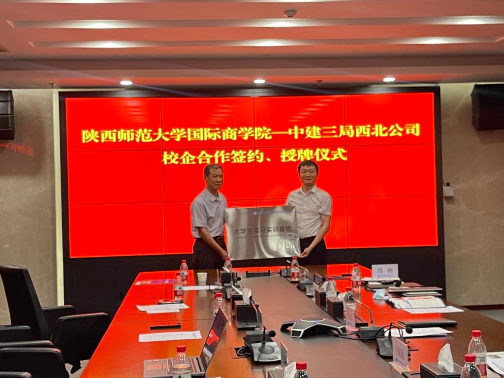在中建三局西北分公司,双方在教学实践、实习就业、校企合作等方面达成合作共识,签署了tyc41183太阳成实习实践基地协议书。公司经理雷宏振为基地授牌。