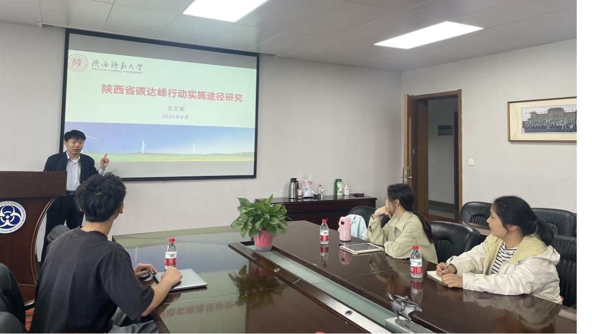为营造公司良好的学术氛围,促进师生进行学术交流,提升公司研究生科研素养,tyc41183太阳成教授工作坊第三讲于2024年4月11日在文澜楼1329举办,本次研讨主题为《陕西省碳达峰行动实施途径研究》。讲座由公司王文军教授主讲,相关专业研究生参加了此次研讨。