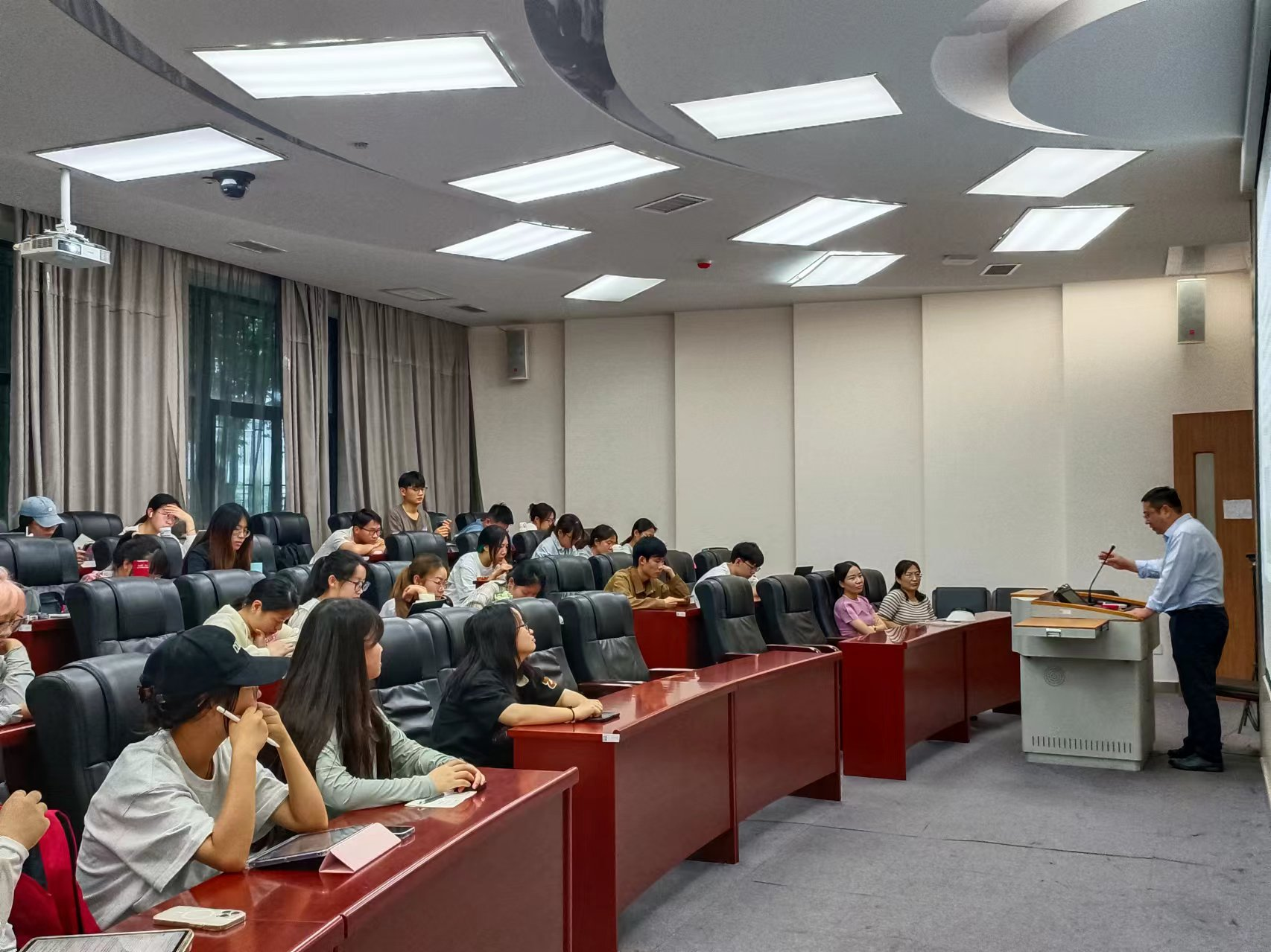 2024年6月7日晚,tyc41183太阳成国际金融管理系于文澜楼1102报告厅举办了“精英课堂”讲座第七期《建筑转型发展的未来——智慧城市运营商》。本次讲座由中建方程投资发展集团有限公司西北公司党委委员、中建跃程(西安)置业有限公司总经理徐强主讲,旨在探讨在中国城镇化率不断提升、城市病等问题亟待解决的背景下中国新型城镇化建设的出路。参加此次讲座的有国际金融管理系贾妮莎老师、公共管理系韩树蓉老师。