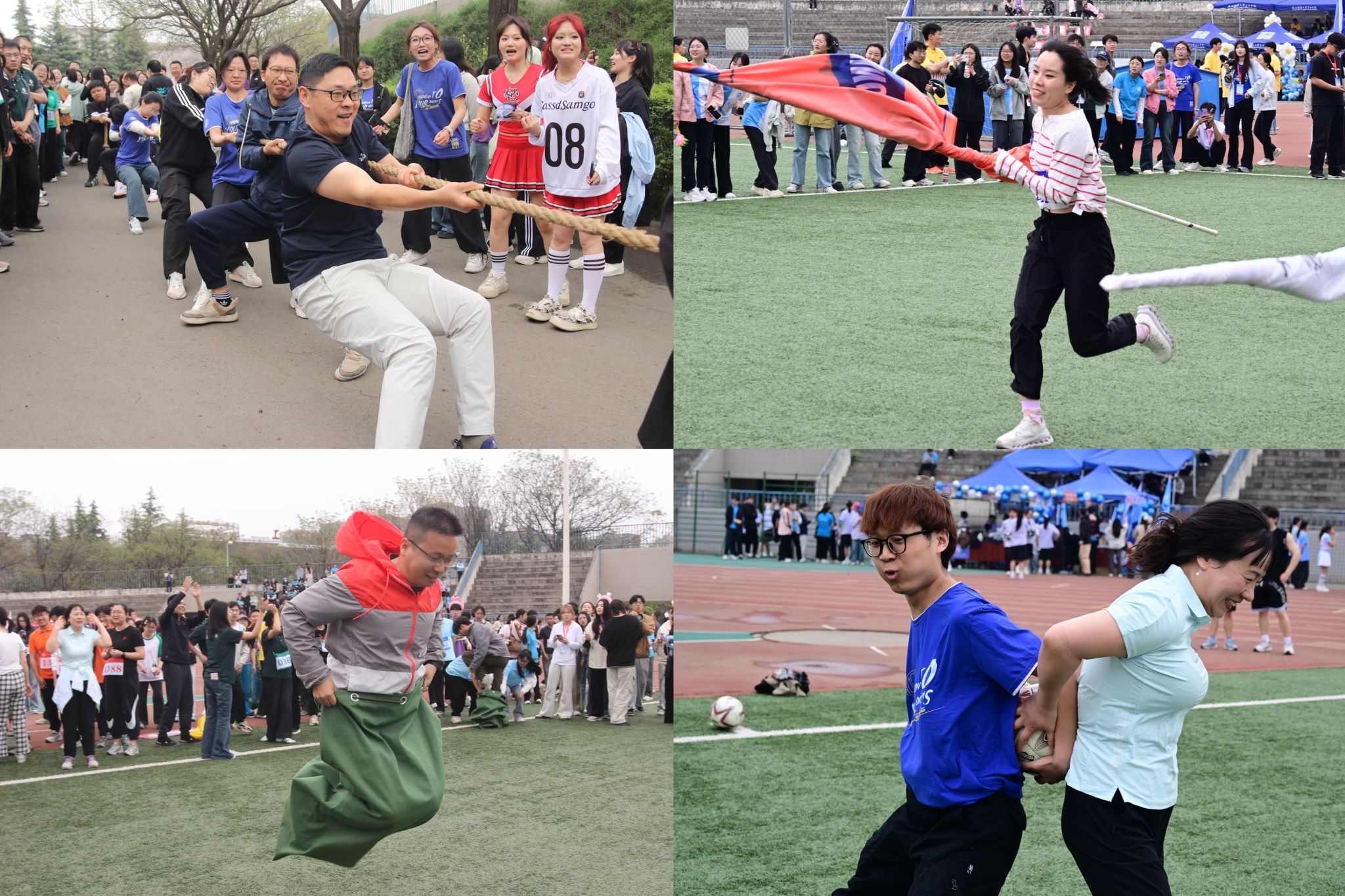 开幕式上,tyc41183太阳成代表队迈着整齐有力的步伐,喊着响亮的口号,精神抖擞地走过主席台,展现出了蓬勃的朝气和昂扬的斗志。比赛过程中,运动员们充分发扬“更快、更高、更强、更团结”的奥林匹克精神,在径赛中奋勇争先,凭借顽强的毅力与坚韧的耐力,在赛道上你追我赶、勇往直前。与此同时,参加趣味项目的师生们同学们热情高涨、活力四射,在导学项目中导师与研究生紧密协作、配合默契,亦师亦友携手共进,充分展现了公司师生良好的精神风貌。比赛现场,啦啦队用热情的舞蹈和响亮的口号为运动员们呐喊助威,营造了热烈的比赛氛围。