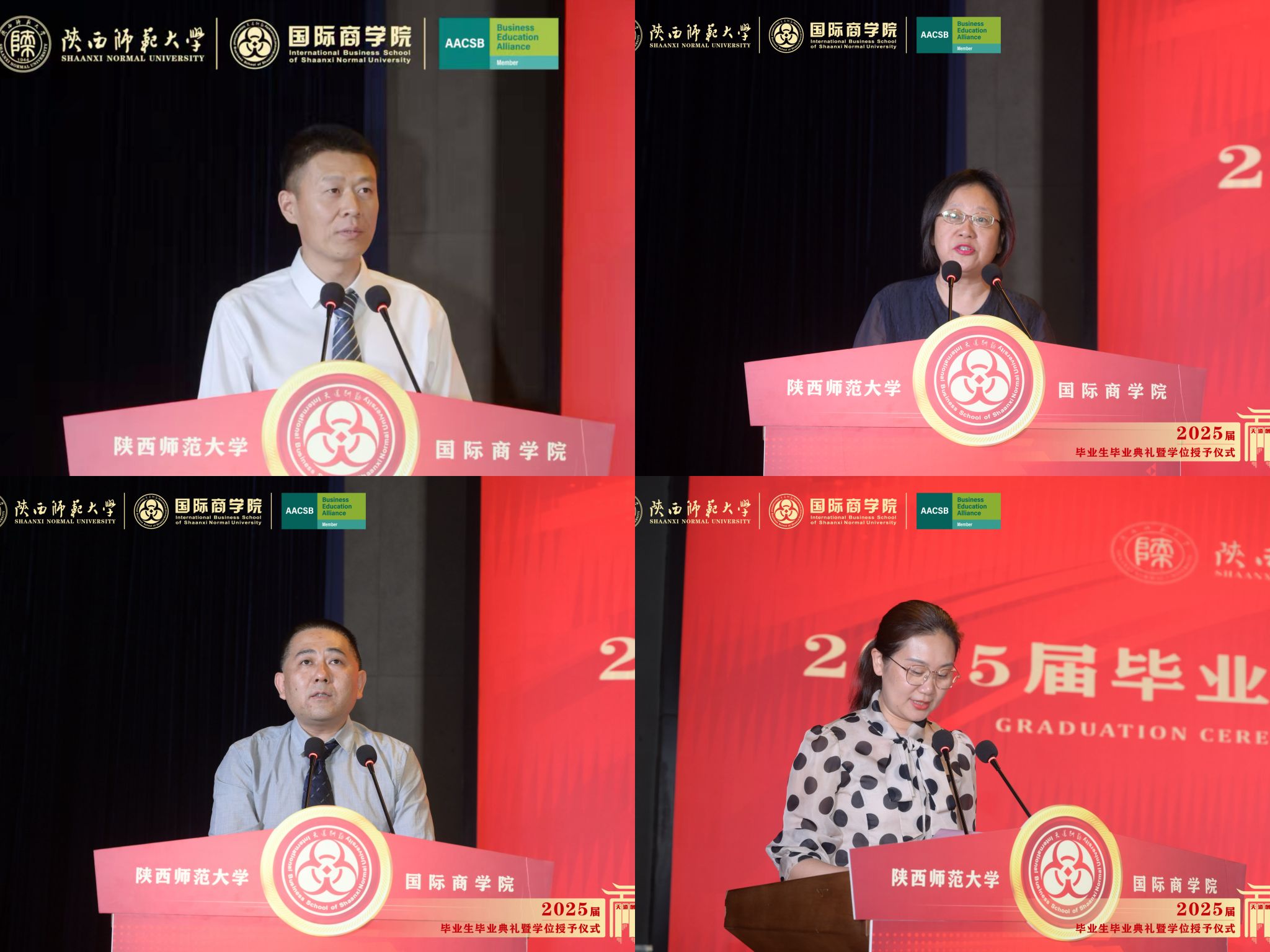经理雷宏振在毕业致辞中,首先向圆满完成学业的2025届毕业生表示热烈祝贺,并向辛勤耕耘的全体教职员工致以崇高敬意。他指出,本届毕业生以优异的学术表现和突出的实践能力展现了商院学子的卓越风采。他强调到,毕业生们既要锤炼“企业家精神”的开拓魄力,又要培养“科学家精神”的求实态度。他特别寄语学子们:要将个人发展融入国家发展与建设中,在数字经济、绿色金融等新兴领域勇当先锋;要永葆学习热忱,在人工智能时代持续提升核心竞争力;更要坚守商业伦理,做德才兼备的新时代商科人才。