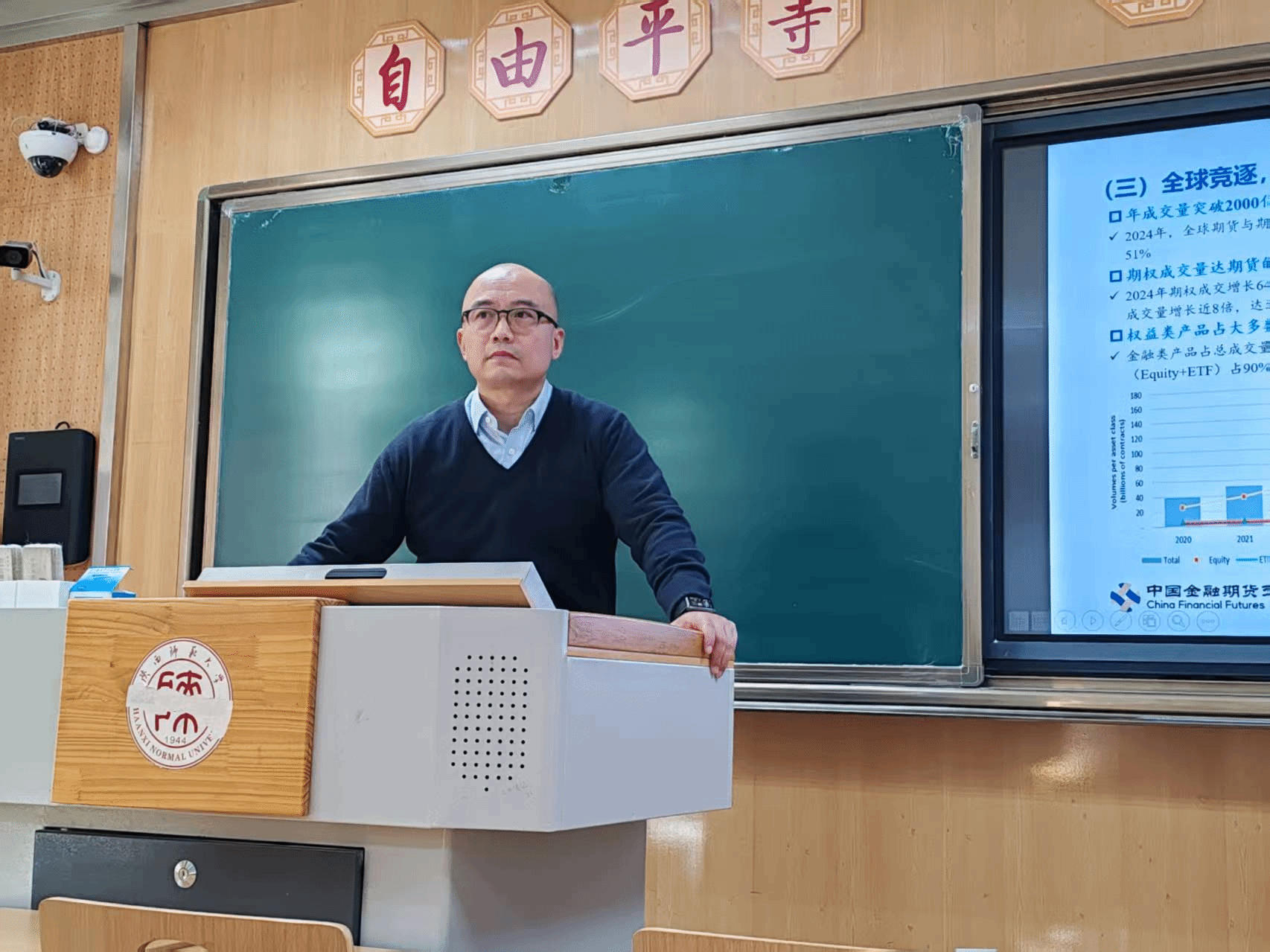 讲座中,王玮副总监结合自身深耕金融期货领域多年的实践经验,从市场发展脉络切入,系统梳理了我国金融期货市场的演进历程与核心成就。他以沪深300股指期货、国债期货等市场核心产品为案例,用通俗易懂的语言拆解金融期货的交易逻辑,深入剖析了其在对冲市场风险、优化资产配置、服务实体经济中的核心功能,让同学们对金融衍生品的实际价值有了直观认知。