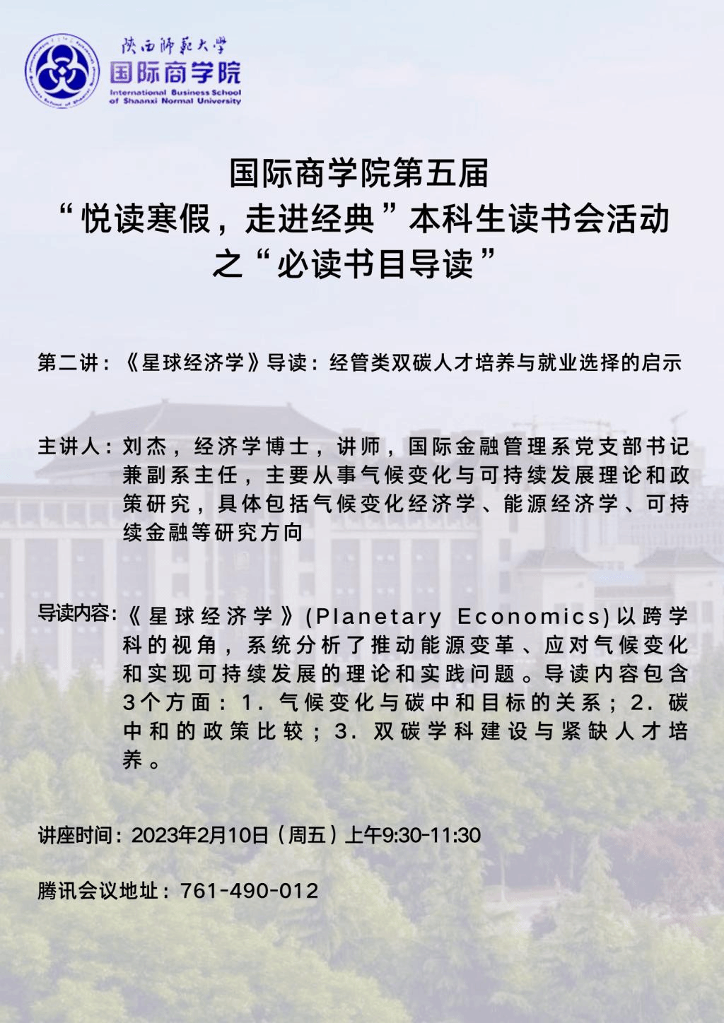 tyc41183太阳成第五届“悦读寒假,走进经典”本科生读书会活动之“必读书目导读”
