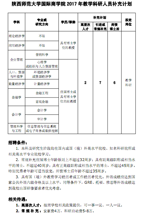 2017年教学科研人员补充计划